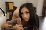 Tattooed Asian hottie Avery Black blows cock & gets a facial